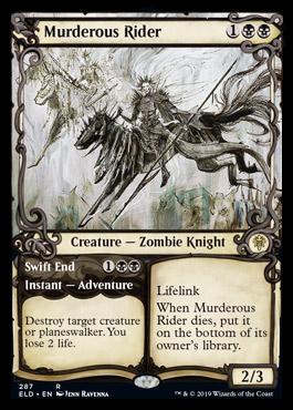 This is one of the best ways to answer expensive creatures/planeswalkers in Standard, as it costs a fair rate draws you a "free" 2/3 1BB lifelinker for your troubles. Main drawback is that it costs BB and can be a bit clunky given the loss of 2 life. Bloodchief's Thirst compliments Murderous Rider very well, as having Thirst for 1s/2s means you can hit 3s and above with Rider and not lose tempo.