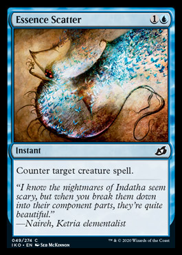Essence Scatter was a very nice answer to Omnath, arguably the best answer available in past Standard (Omnath replaced itself, so you'd rather it not resolve in the first place). With Omnath gone and no commonly played draw-go/permission based control deck, Essence Scatter seems to have largely fallen out of favor for now. Expect to see this either trend down further, or rise suddenly if a Ux Control deck becomes popular in the meta. One last notable thing about Essence Scatter is that while Rogues could play this card, it has better options in Drown in the Loch/Anticognition.